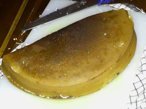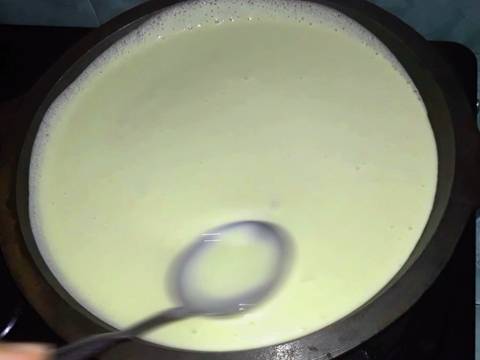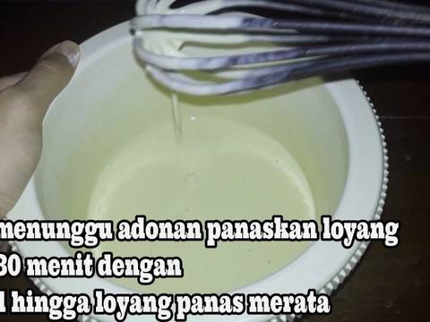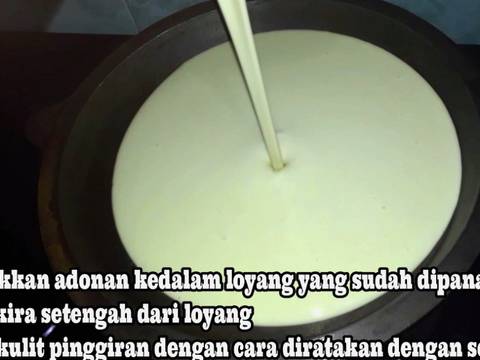 - Masukkan adonan kedalam loyang yang sudah dipanaskan kira-kira setengah dari loyang- Buat kulit pinggiran dengan cara diratakan dengan sendok- Besarkan api hingga adonan mengembang, muncul buih dan kulit pinggiran berwarna kecokelatan lalu kecilkan api