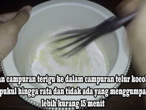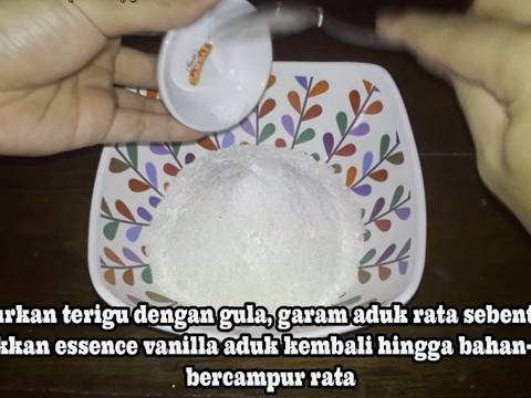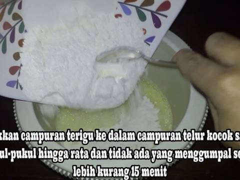- Masukkan kuning telur kedalam gelas ukur tambahkan air putih hingga ukurannya menjadi 310 Ml aduk hingga berbusa- Campurkan terigu dengan gula, garam aduk rata sebentar lalu masukkan essence vanilla aduk kembali hingga bahan-bahan bercampur rata- Siapkan wadah lain lalu masukkan camapuran kuning telur kedalam wadah kocok sebentr dengan menggunakan kocokan spiral - Masukkan campuran terigu ke dalam campuran telur kocok sambil dipukul-pukul hingga rata dan tidak ada yang menggumpal selama lebih kurang 15 menit hingga tekstur adonan menyerupai Susu kental manis lalu istirahatkan adonan selama 30-40 menit- Sambil menunggu adonan panaskan loyang selama 30 menit dengan api kecil hingga loyang panas merata- Setelah sekitar kurang lebih 30 menit di istirahatkan campurkan adonan dengan soda kue lalu kocok kembali dengan keras hingga adonan berbuih