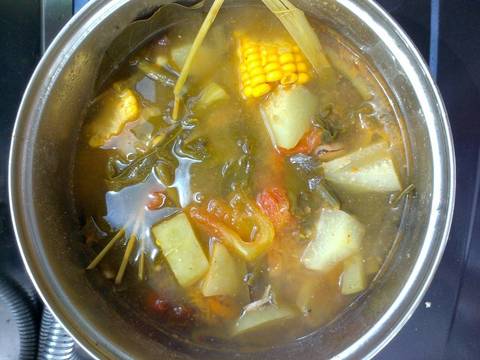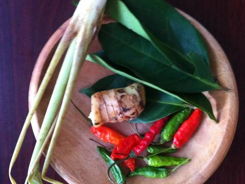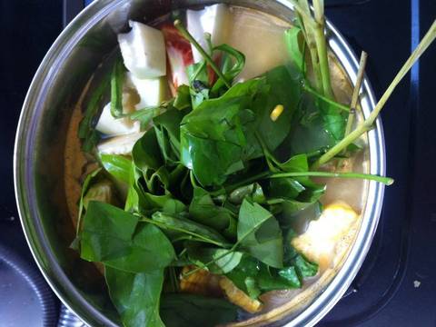 - daun-daunan - Cuci bersih semua bahan dari langkah 1-3 dan potong sayurannya.